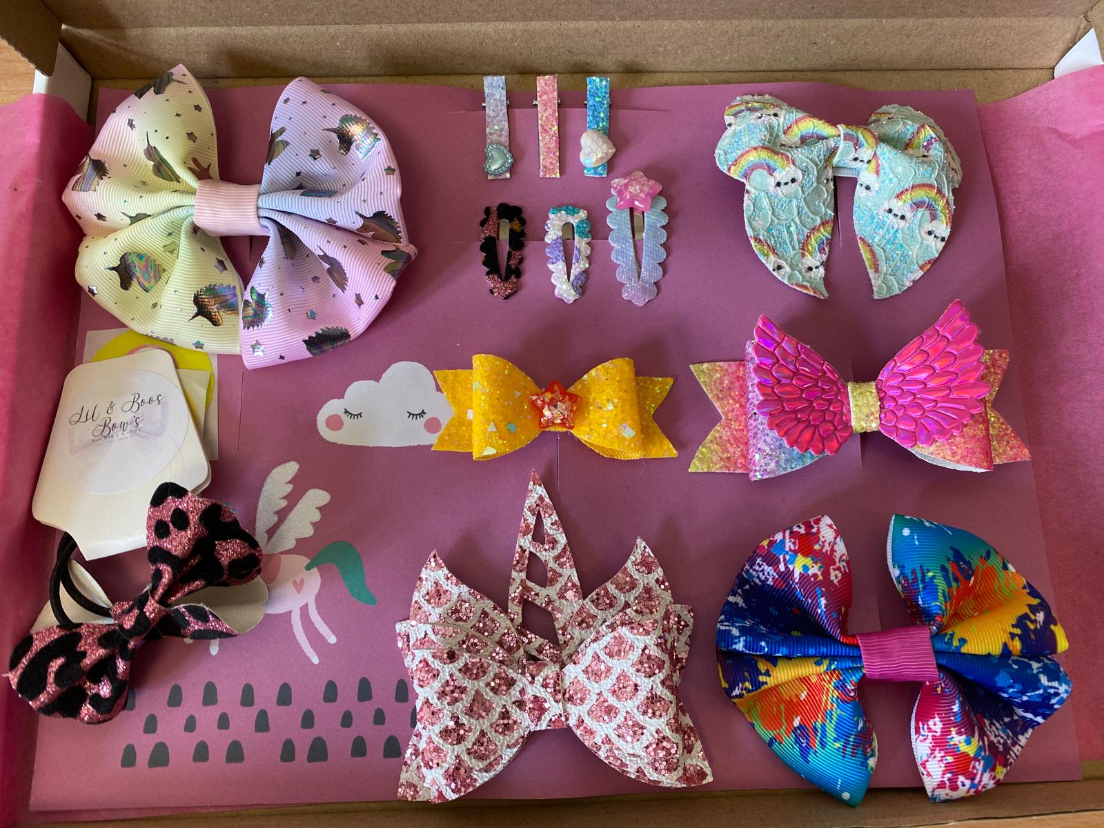 - A selection of pretty hair bows from Lil and Boo’s Bows
