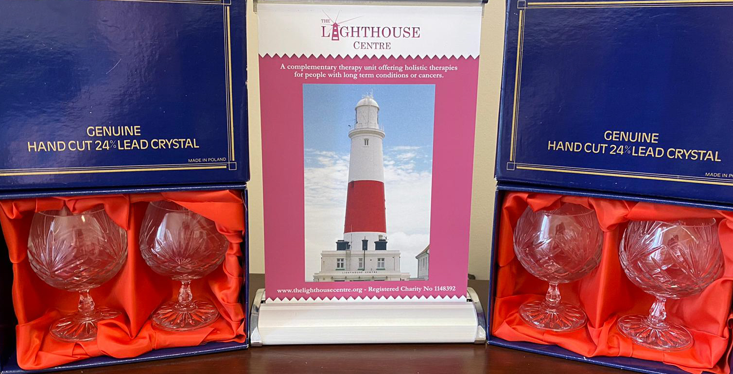 - A gorgeous set of Hand-cut Lead Crystal Glasses kindly donated by Karen Buxton of Red Kite Admin